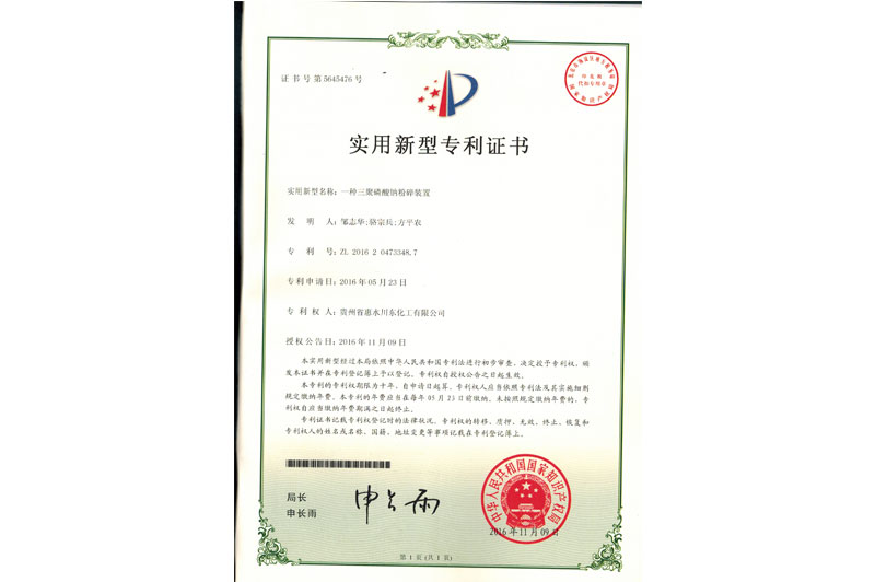 一種三聚磷酸鈉粉碎裝置(專利號:ZL 2016 2 473348.7)